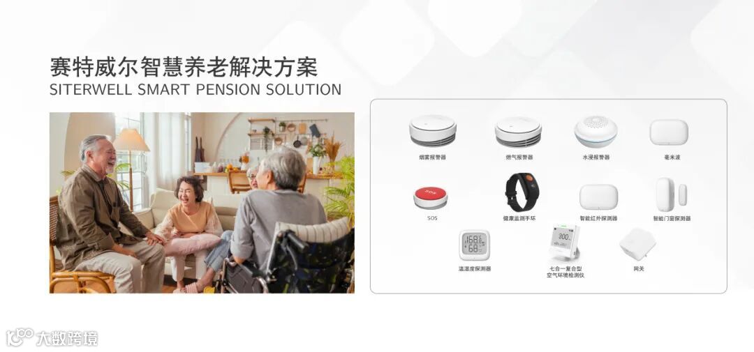 赛特威尔智慧养老解决方案是面向空巢老人、居家老人及养老机构,通过智能安防、消防、健康管理、环境舒适等设备,在尊重和保护老人隐私前提下保障老人的安全,解决子女及监管机构的难题;借助适老化科技服务及产品,建立健全老年人信息数据库,有效连接老人和子女、社工之间的信息传递,为老人提供便捷、精准、高效的智慧养老服务。