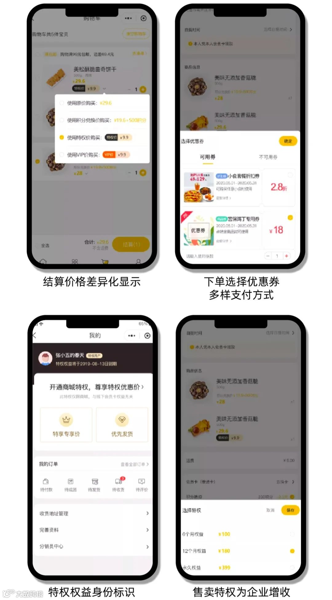 ■ 数据打通:一方面与天财商龙CRM系统打通后,与会员数据连接,支持会员卡余额、会员券、积分购买;享受会员特权价等进行优惠购物。