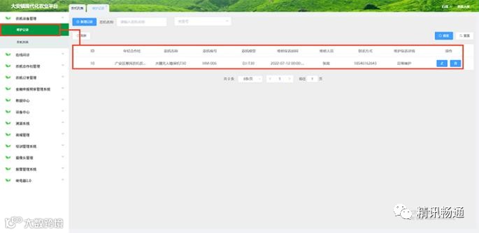 点击农机设备管理模块,可查看农机列表和维护记录