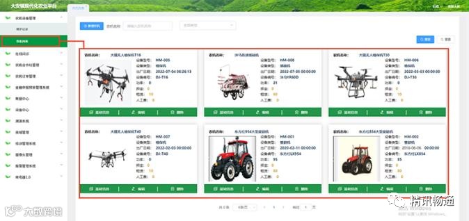 农机列表:可查看/编辑/添加各登记农机设备信息。