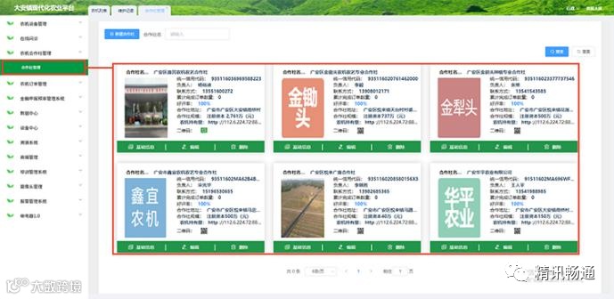点击农机合作社管理,可查看/编辑/添加各农业合作社信息。