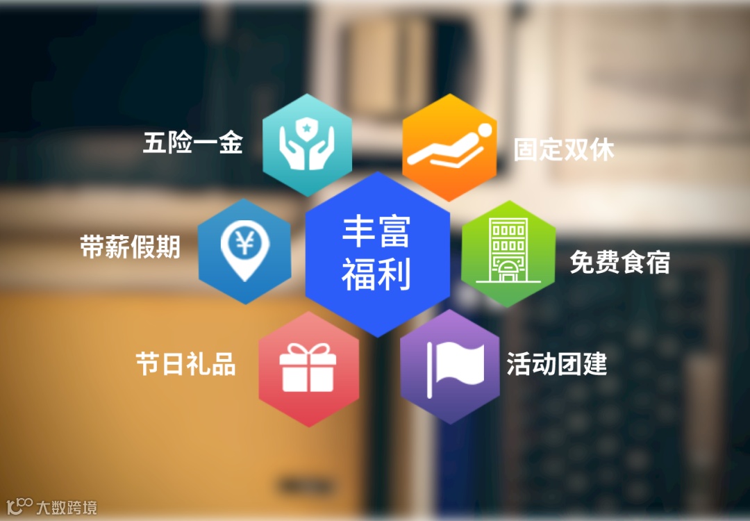 > 周末双休、五险一金、免费工作餐、免费宿舍等;