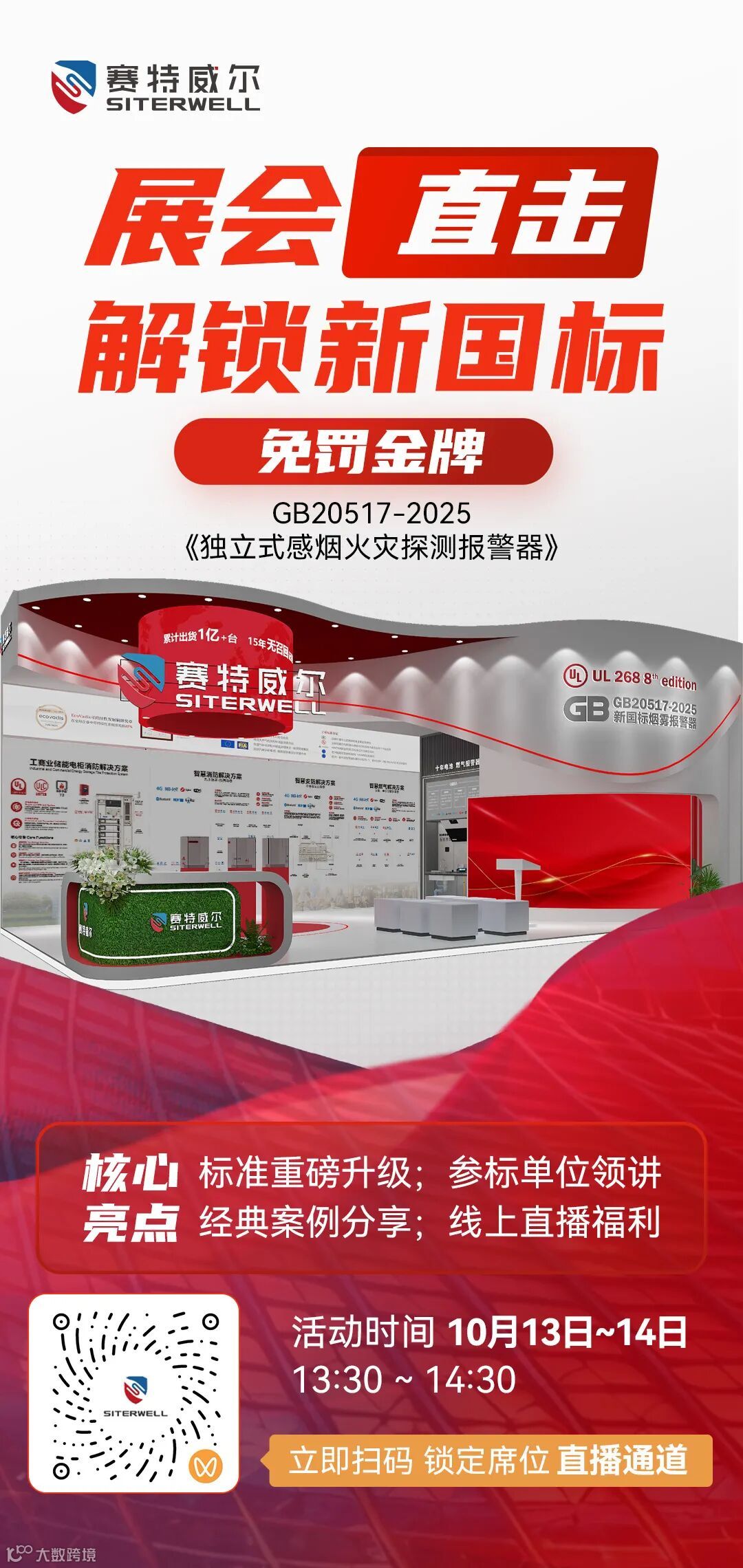 此次展会上,赛特威尔作为《独立式感烟火灾探测报警器》新国标GB20517-2025的参编单位之一,特别在中国国际消防展(展位号W1-54)开启新国标深度解析的直播活动。观众可通过线上直播通道参与,实时互动,获取最新国标资讯。
