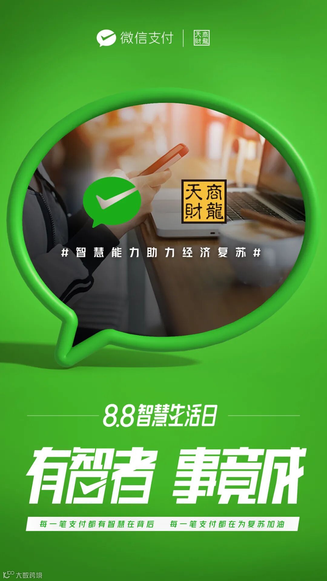 从支付体验的焕新升级、到产品理念的输出普及、再到智慧生活的全民参与,每一笔微信支付都有智慧在背后,每一笔微信支付都在经济复苏加油。正如本次“8.8智慧生活日”的主题——“有智者,事竟成”,智慧的微信支付和智慧的品牌商家携手,合力共建智慧生活,经济复苏势在必行。