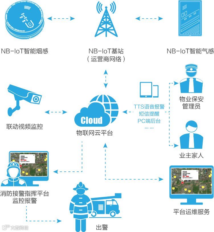 赛特威尔NB-IoT城市智慧消防解决方案是由多款基于低功耗物联网(NB-IoT)技术的智能探测报警器,以及一套与之匹配的智能监控报警管理系统组成。