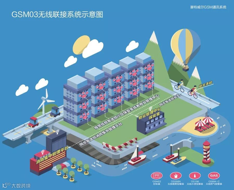 赛特威尔GSM03智能火灾联动系统专业用于通天房、出租房、三合一等九小场所,为此类特殊环境打造一个360度无遗漏的火灾预防解决方案。
