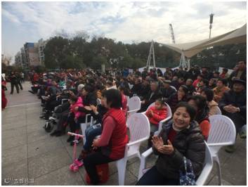 现场除了大伯大妈还有很多小萌娃,活动还未开始就已座无虚席,后边位置被里三层外三层的围着。随着社区大妈一曲《开门红》后,活动拉开了帷幕。