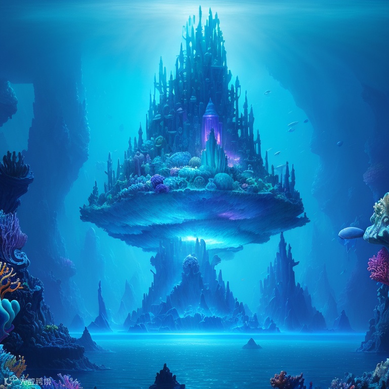 关键词咒语:a painting of a beyond-dimensional fantasy world,a world of under the sea,Atlantis,science fiction,uplighting,studio Ghibli,unreal engine,epic composition,CG digital render,Ultra HD,technique highly detailed,triadic color scheme