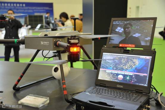 在展示区,人脸识别系统挂载在EWZ-S8多旋翼无人机上,配合高倍数光学变焦镜头,可超视距识别。