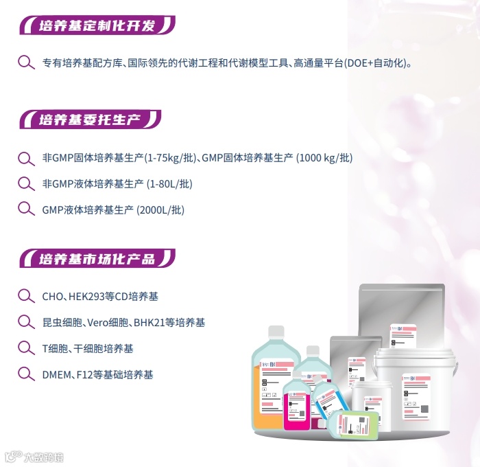 公司聚焦于生物药CDMO服务,通过细胞系和无血清培养基共同开发平台的技术优势,运用卓越的质量管理能力,为全球生物药企业降低研发和生产成本,加速其产品进入临床研究和上市进程。