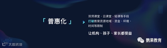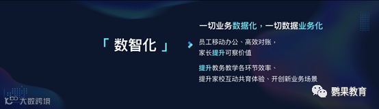 数智化:各类教育科技产品将覆盖教学评估、教务管理、家校共育等各个环节,从学习画像到成长过程,一切业务数据化,帮助家长提升可查价值,家校共育再无障碍。同时教务教学各环节效率、家校互动共育体验都得以提升、从而开创更多新业务场景。