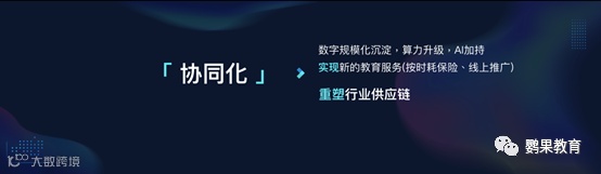 协同化:教育产业链上下游将被互联网或物联网平台深度连接,协作更加紧密。教育机构只需加强优势、专注办学,内容、营销、金融、技术等增值服务需求将由第三方机构承接,且成本不断降低。教育行业的潜在需求将被深入挖掘,专业教育服务将大量涌现。教育机构与供应链服务商形成高效协同的生态体系。