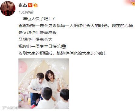 男星张杰发过这样一条微博:现在的心情,是又想你们快点成长,又想你们慢点长大。