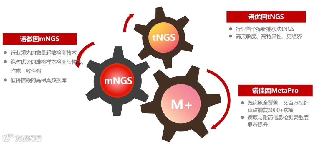 诺因生物成立于2020年,作为一家研发和技术驱动型的分子诊断企业,围绕多重PCR、宏基因组测序(mNGS)、探针靶向病原检测等前沿技术平台,自主研发了应用于常见病原快速检测、急危重症感染全面检测及重点关注病原&耐药基因的整体检测等多种解决方案。通过独有的破壁核酸提取技术、多重PCR引物设计算法、pg级核酸扩增技术、探针捕获技术、病原数据库压缩算法、智能化数据分析和报告解读系统等一系列突破性技术,具备行业领先的病原体检测能力。