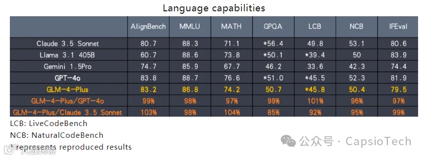 语言基础模型GLM-4-Plus:在语言解析、指令执行和长文本处理能力上实现了质的飞跃,持续保持在国际竞争中的领先地位。
