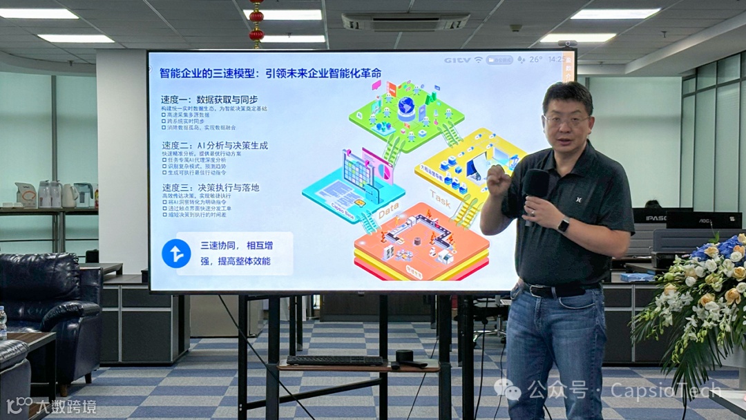 盈数智能创始人兼CEO李仲涛博士在会上发表致辞,指出全球企业已进入智能化时代,企业需要构建"三速协同"模型,即数据获取与同步速度、AI决策速度以及决策执行速度,三速协同,相互增强,才能真正实现智能化运营。盈数智能此次发布的全流程智能化运营导航系统,正是基于这一理念,旨在帮助企业打通从数据到AI,再到执行的全流程闭环。