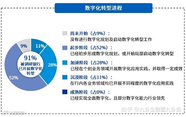 国有大行和股份制银行在数字化转型过程中身先士卒,转型的成功率和渗透率都比较高,下文来自于九卦金融网的分析,主要是城商行、农信联社及农商行数字化转型的调查情况。