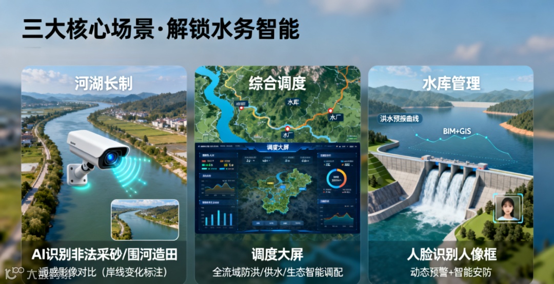 通过云、物联网、AI 等技术构建统一数字平台,整合水情、水质、工情等全量数据,打破 “信息孤岛”。同时沉淀可复用的技术组件和算法模型,让新应用快速落地,大幅降低开发成本。