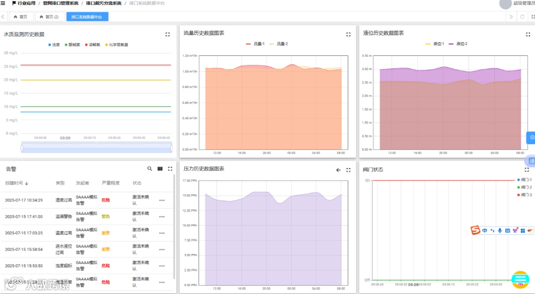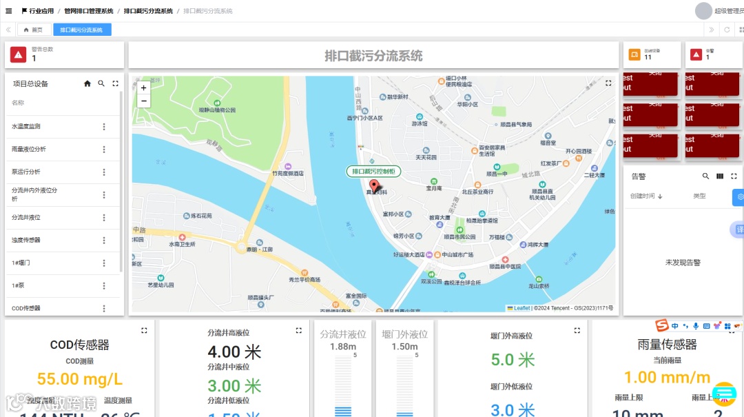实时呈现排口的流量、水质等数据;展示截污分流设备的运行状态,如阀门开度、泵站运行情况等;以直观的图表形式展示数据随时间的变化趋势。