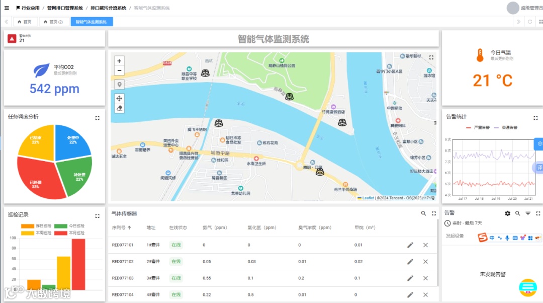 实时呈现排口的各项数据,包括流量、水质参数、水位等;以直观的图表形式展示数据随时间的变化趋势;对排口关键指标进行实时监测,如水质超标、流量异常、水位过高或过低等。