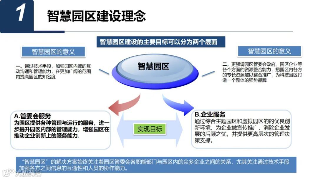 本方案聚焦构建智慧、高效、安全的园区数字化生态,以 “技术赋能商业、服务美好生活” 为核心,整合园区管委会、企业等多方资源,打通产业链壁垒。平台依托云计算、大数据、物联网等技术,构建多层级架构,涵盖应用层、平台中心层及网络层,实现全方位数字化管理。