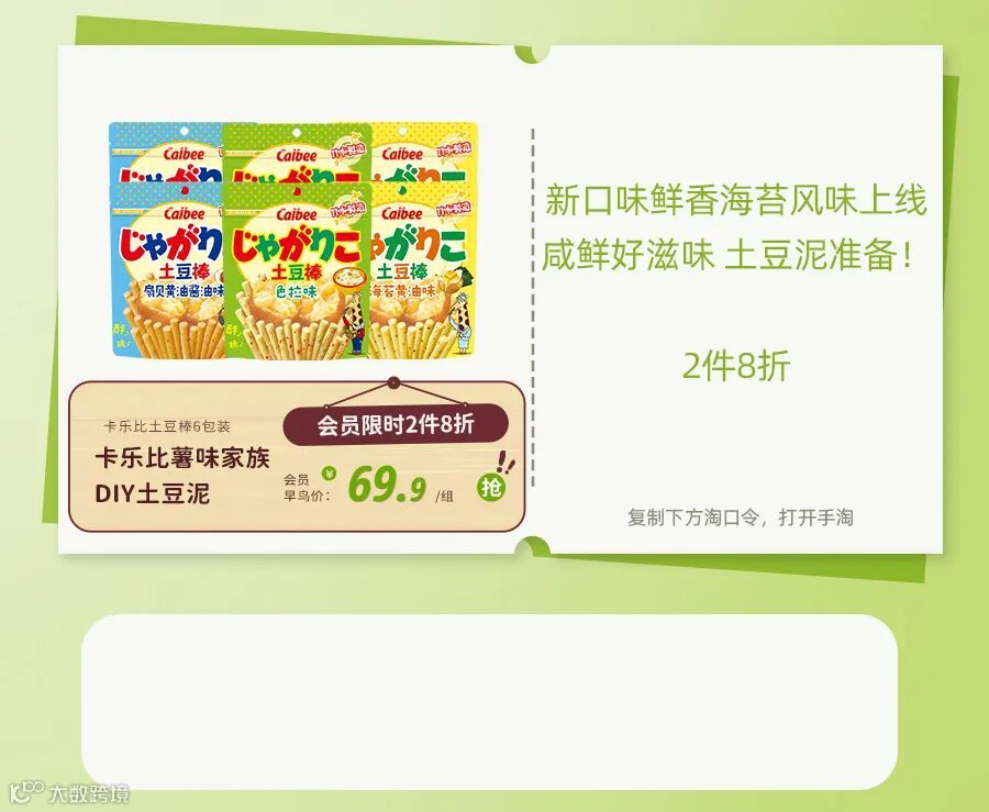 卡乐比Calbee官方服务号。日本休闲零食畅销品牌,我们珍惜运用自然的恩赐,创造美味与欢乐,为人们的健康生活做出贡献。