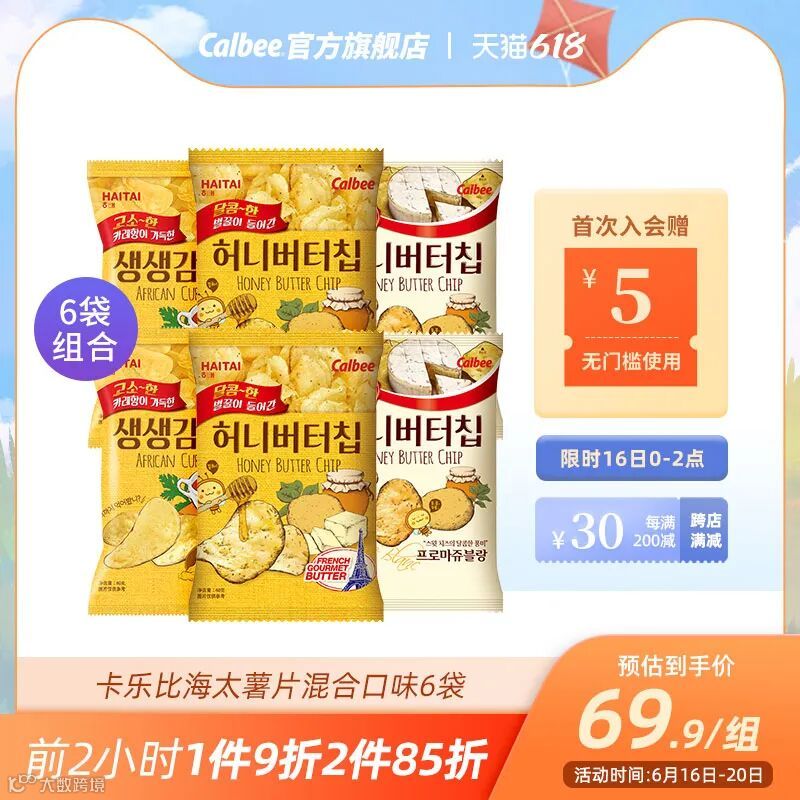前2小时2件85折,69.9/6袋可叠加津贴享受折扣,折扣到手一袋低于10元。