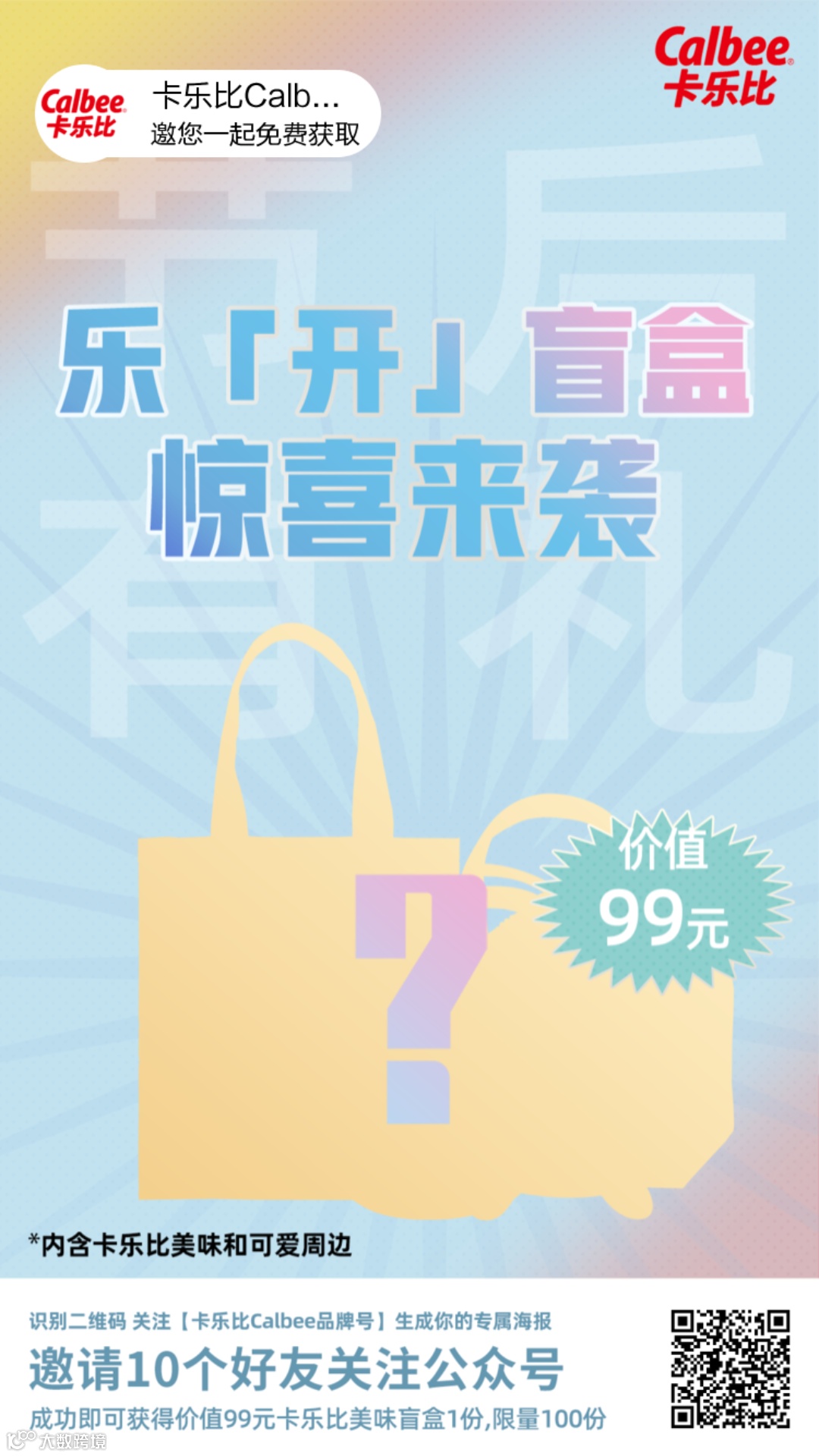 扫码邀请好友赢取99元卡乐比盲盒