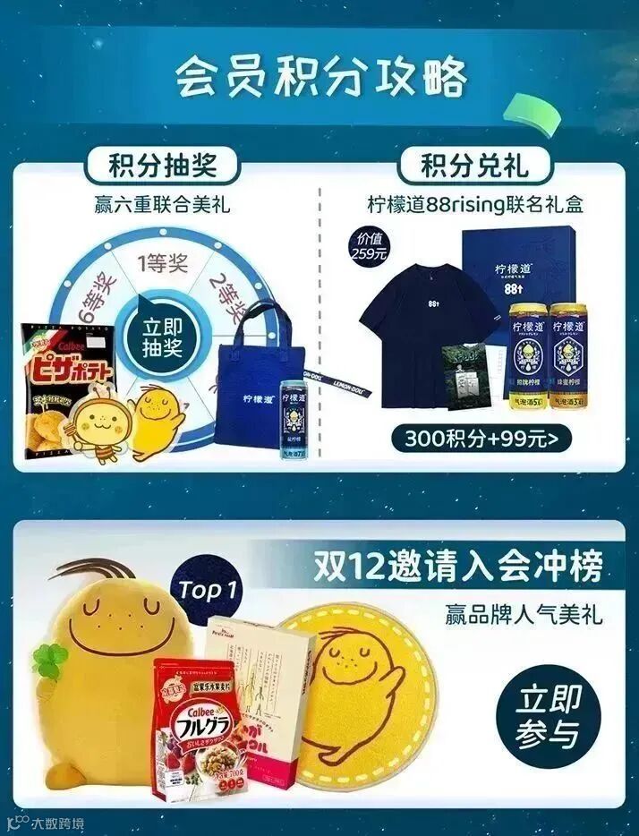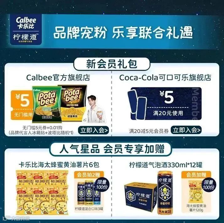 即日起至12月12日,点击【Calbee官方旗舰店】联合活动专属会员页,9.9抢豪礼、会员加赠跨店美味,海量互动礼等你来拿!
