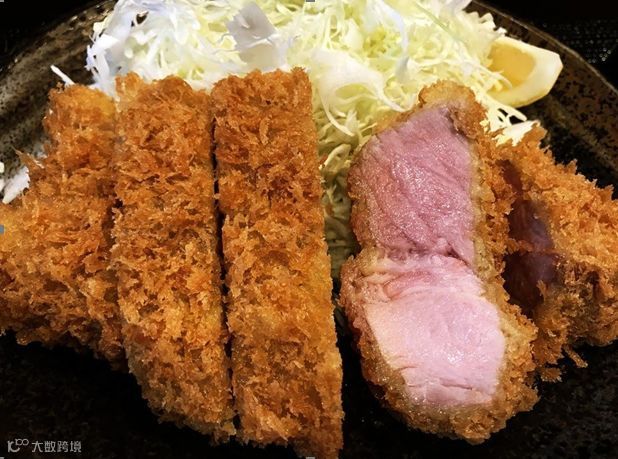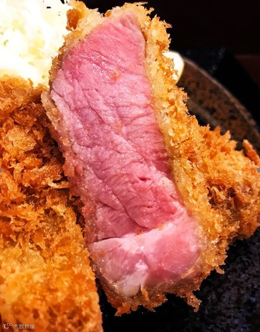 猪排的切面是粉粉嫩嫩的~薄薄的外皮口感酥酥脆脆,厚实的肉一口咬下去不费力也不油腻,口感柔软而有弹性。