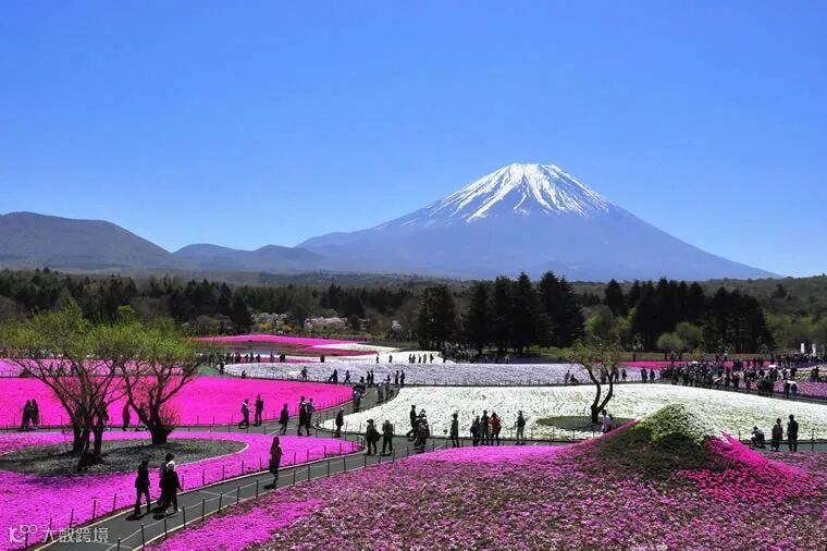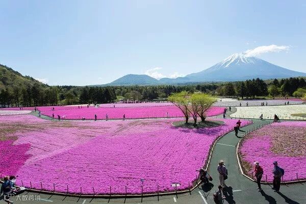 在富士山河口湖,有整个东京圈最盛大的芝樱祭,以残雪未消的富士山为背景,80万株芝樱盛放,富士山旁将成为一整片粉紫色的海洋~~~