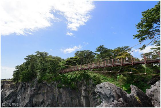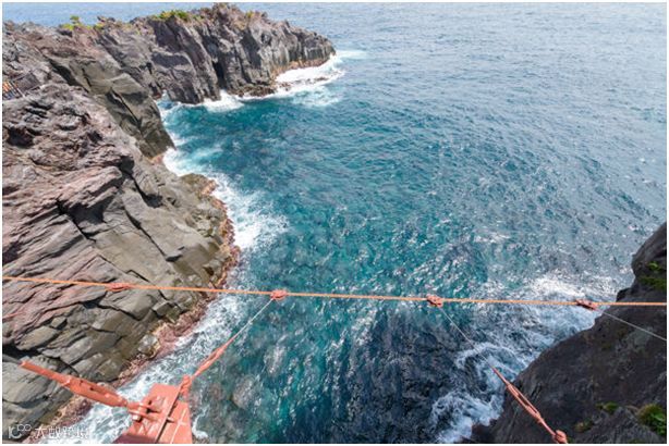 熔岩经过了长久的侵蚀终于成为现在的样子。那里还有同为八景之一的门脇吊桥,它距海面23米高,步行经过很需要一点儿胆量,是赏景的绝佳地。