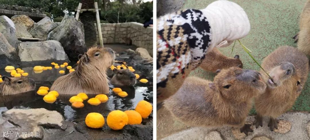 11月下旬到4月上旬,能看到水豚眯着眼睛舒舒服服地泡温泉,每天只有一场嗷。园区里的水豚是一家子,工作人员还会用日语介绍它们的习性。