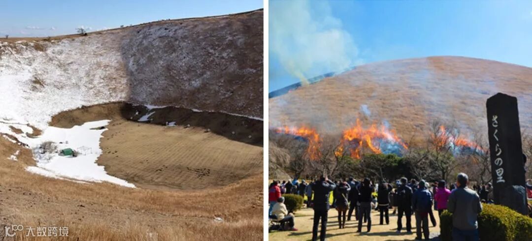 大室山每年二月的第二个星期天会进行烧山活动,已经持续上百年啦。虽然没有亲眼见到,想来场面一定壮观。