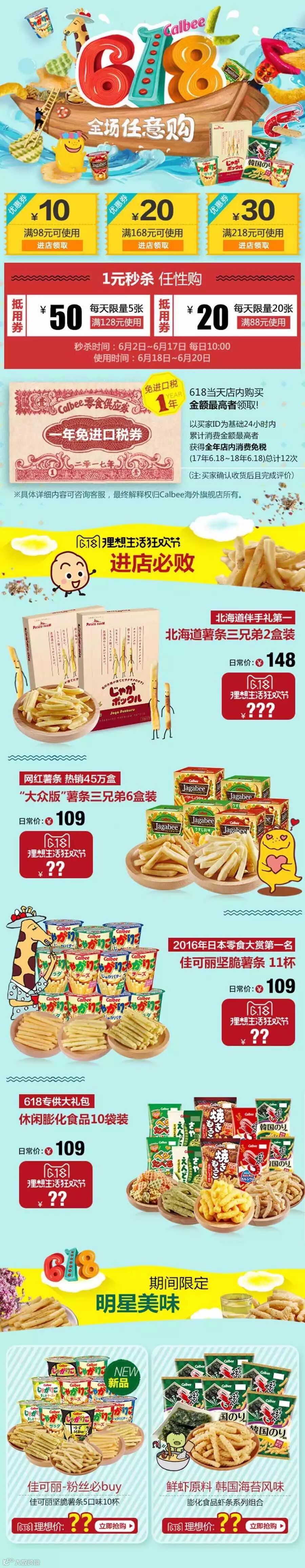 卡乐比Calbee品牌号618即将来袭,全场任意购