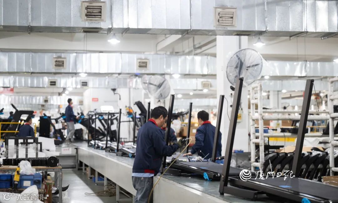 不远处的厦门群鑫机械工业有限公司(以下简称“群鑫机械”),生产车间同样火热,今年跑步机的出口达上亿元,主要销往欧美市场。