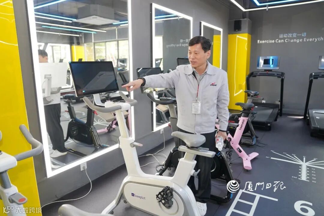 “一台跑步机的背后,是‘中国制造’向‘中国智造’升级的故事。”群鑫机械总经理方俊雄,曾是台湾高雄科技大学电机系教授,10多年前来到厦门,投身大陆的运动健身事业。他说,早期的家用跑步机属于“新鲜大件”,价格昂贵、体积庞大、功能单一。这些年,跑步机不断更新迭代,外形上更轻薄小巧,功能上更人性智能,减震技术越来越先进,还增加娱乐、社交、健康管理等各种服务。