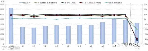 据国家统计局3月16日发布数据,2020年1-2月份,全国餐饮收入4194亿元,同比下降43.1%,增速较上年同期下降52.8个百分点,呈现断崖式下跌。限额以上单位餐饮收入928亿元,同比下降39.7%,比上年同期下降47.8个百分点。相比社会消费品零售总额降幅(20.5%),全国餐饮市场降幅高于整个消费市场降幅22.6个百分点,餐饮市场成为受新冠肺炎疫情影响的重灾区。