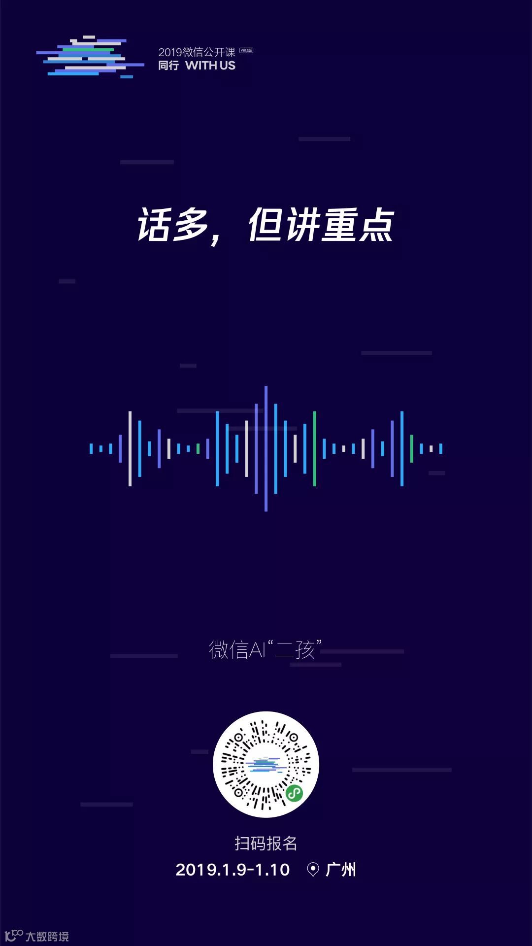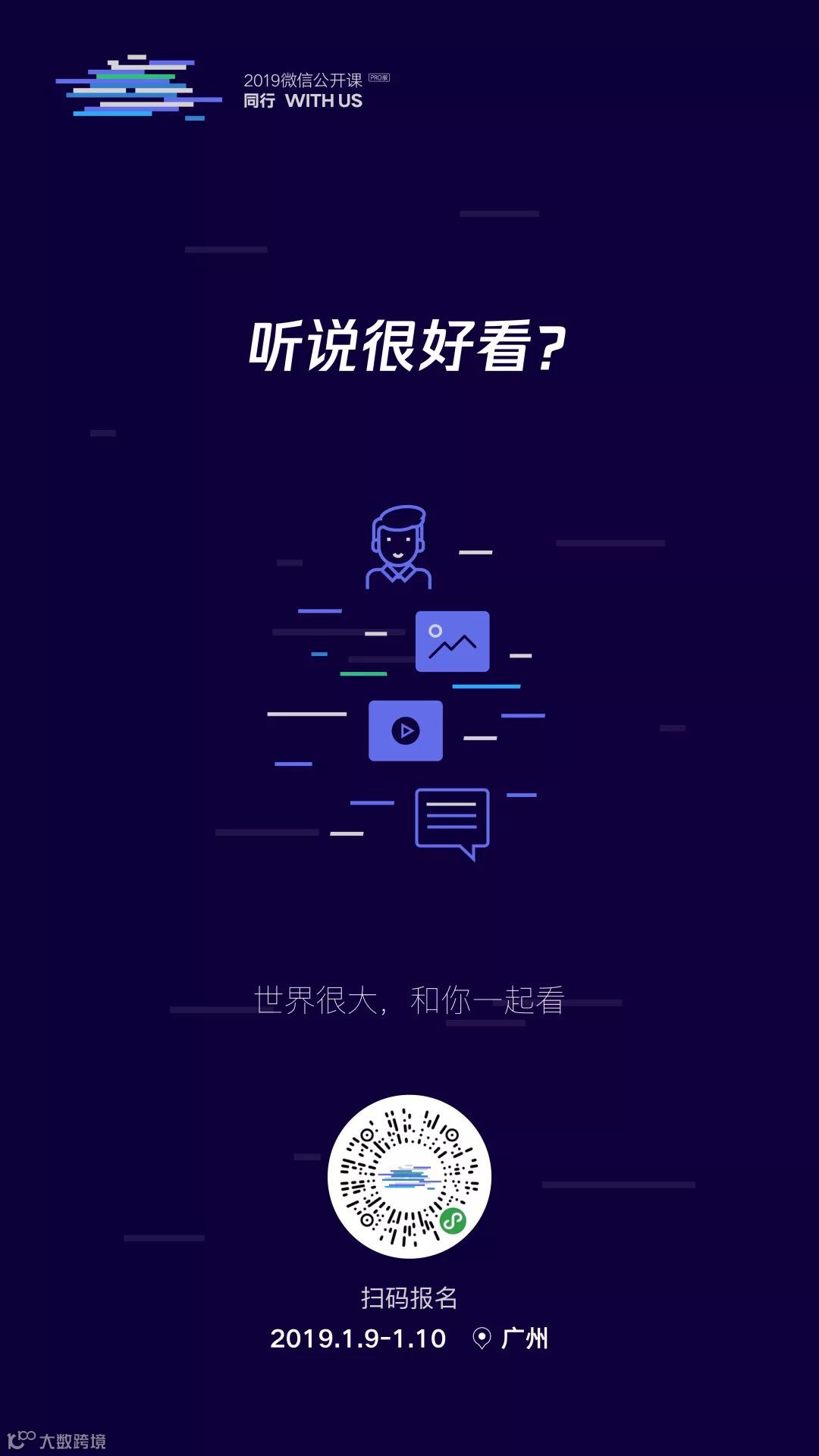 2019微信公开课PRO 将于1月9日-10日在广州保利世贸博览馆举行。本次公开课的主题是“同行With Us”,2天时间里将进行2场主论坛、13场平行论坛以及1场神秘的“微信之夜”。