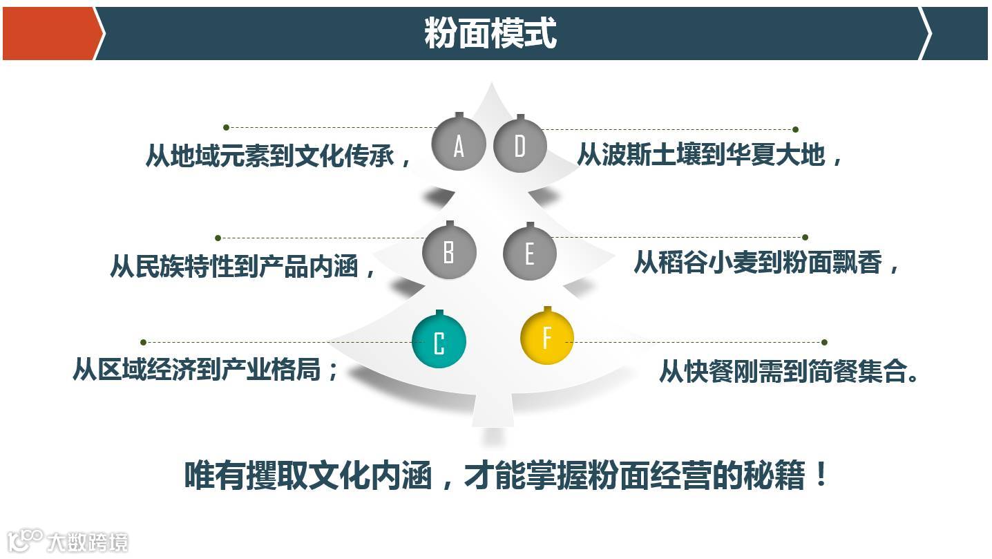 通过对粉面模式的透彻阐述,夏主席指出了地域与文化、民族与产品、区域经济与产业格局之间的密切联系,同时将波斯土壤与中华大地、稻谷小麦与粉面飘香、快餐刚需与简餐集合关系用逐层渗透的方式进行了分解剖析。