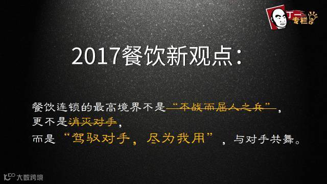 餐饮连锁的最高境界不是“不战而屈人之兵”,更不是消灭对手,而是“驾驭对手,尽为我用”,与对手共舞。