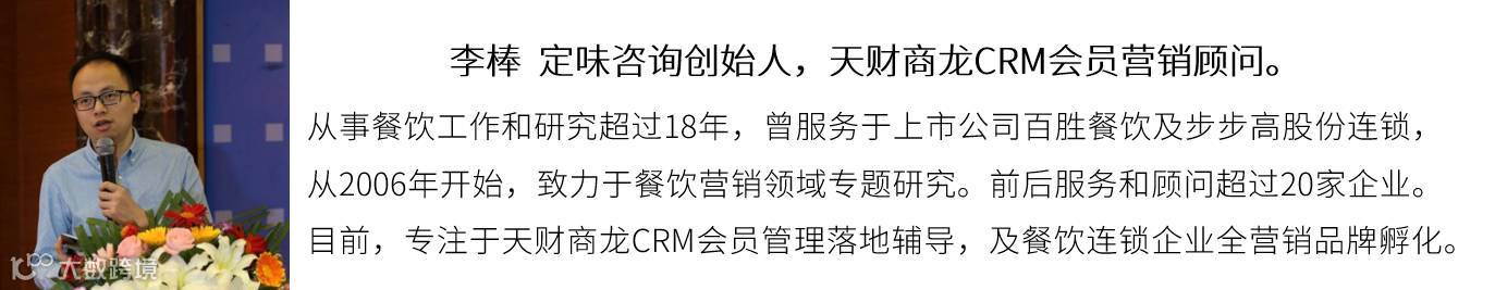 总结讲师李棒的“餐饮营销与会员的七大关”的观点,其主要从当下餐企面临的困扰、难题,对专业度的要求,餐厅会员管理的痛点以及会员营销的效果呈现等几个论点加以解析。同时,透过天财商龙CRM系统在商户中的成功落地,为“用数据说话”的运营思路证明,