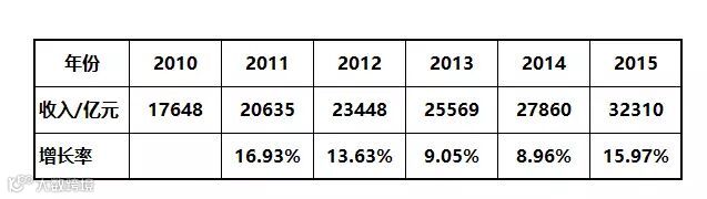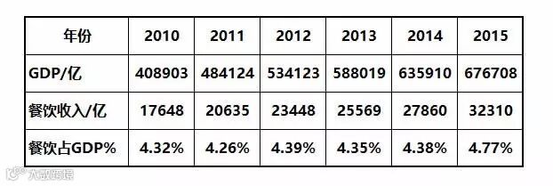 先来看张2010-2015年的餐饮业收入汇总表