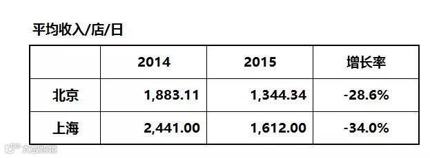单店单日做到2014年北京1883、上海2441已经不赚钱了,再落到2015年北京的1344、上海的1612,那是铁定亏死了。