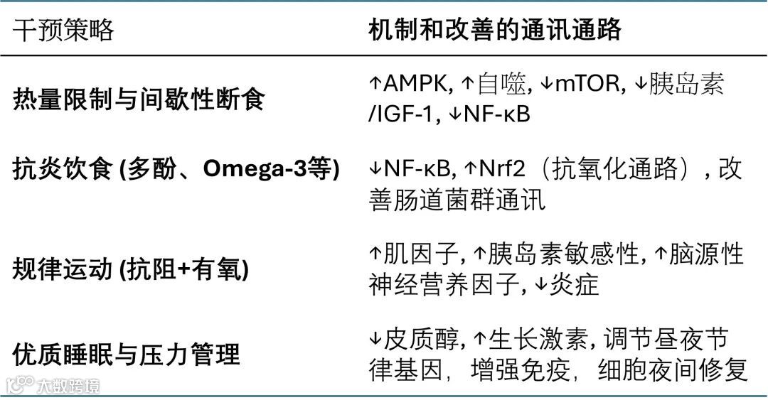 ● 抗炎饮食、适度运动、提高机体抗氧化应激能力、高质量睡眠的生活方式是延长健康寿命的基础和核心。