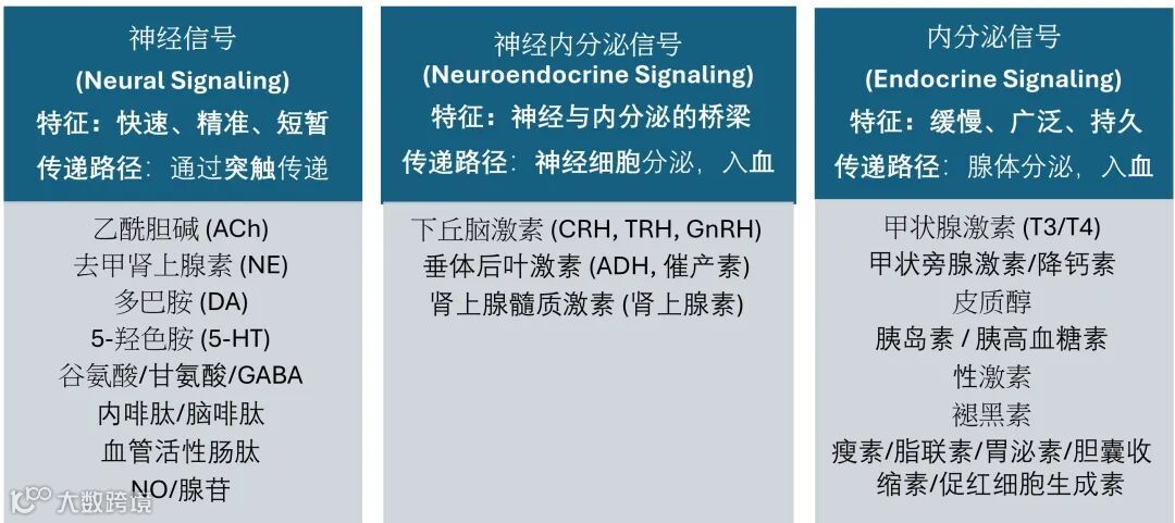 ● 神经、神经内分泌和激素信号通路是机体整合调控的三大核心系统。