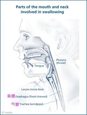 进食看似容易,却涉及神经及咽喉肌肉协调。食物在口腔經咀嚼,吞咽后经食道蠕动往下推,进入胃部及肠道;而同一时间,空气在鼻孔进入同一管道,往下却要通往气管。一旦彼此不协调或走错了路,人就会被呛到。