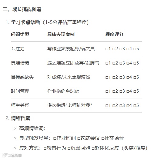 通过《幸福诊断表》了解孩子特长、痛点及家庭关系