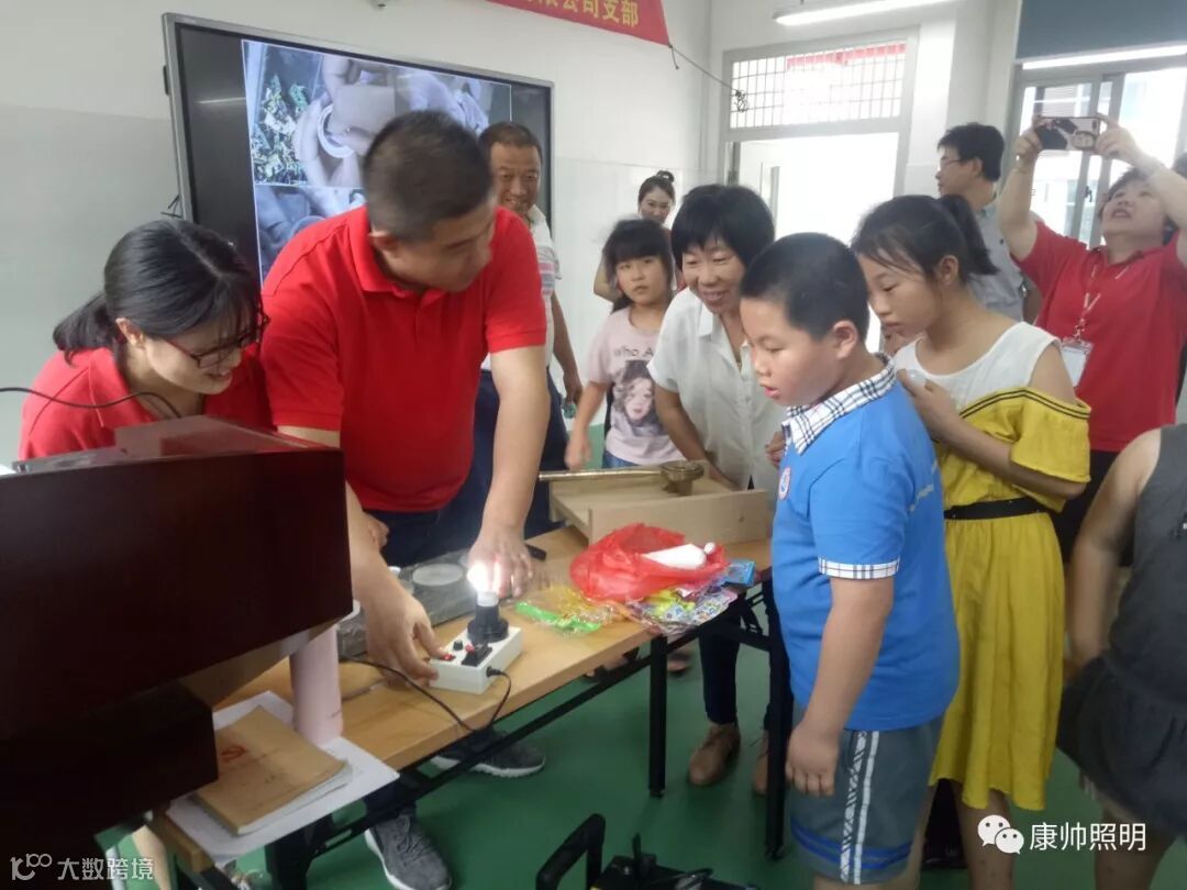 我司党支部同事们在总经理的带领下,细心的为孩子们演示组装灯的过程,生动的讲解了这小小的一套组装成型的灯所涵盖的大天地,介绍了这套组装灯的优势,是我司自主研发,拥有多项自主知识产权,科技含量高的产品,小小的灯泡饱含了我司科研人员的无数心血,也是他们坚持不懈的成果,从而唤醒孩子们心中的那份好奇,激励这些孩子努力成长,决不放弃!只要心中有光,就能光照晨昕,亦能朝气蓬勃。