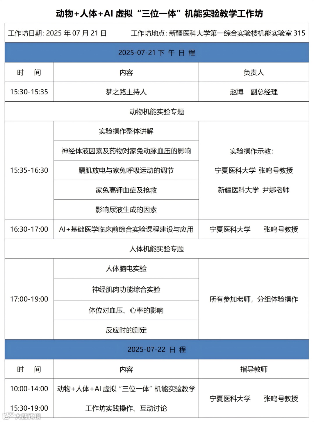 机能实验教学工作坊日程安排
